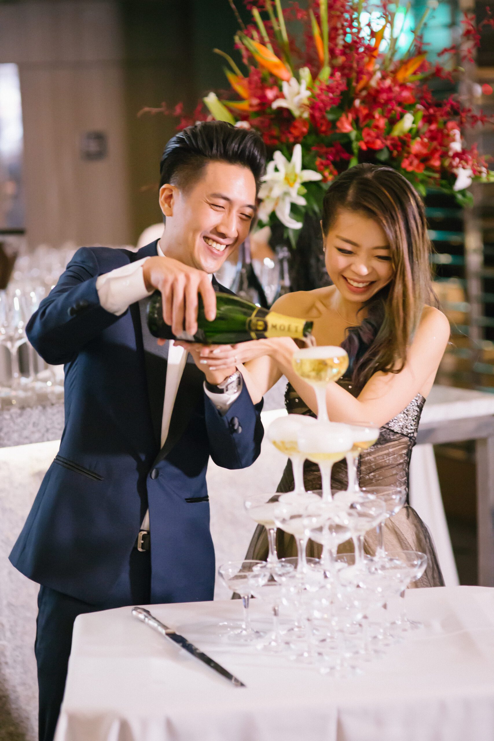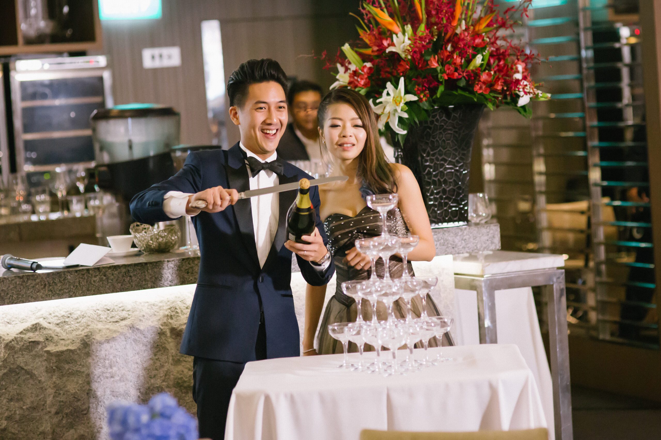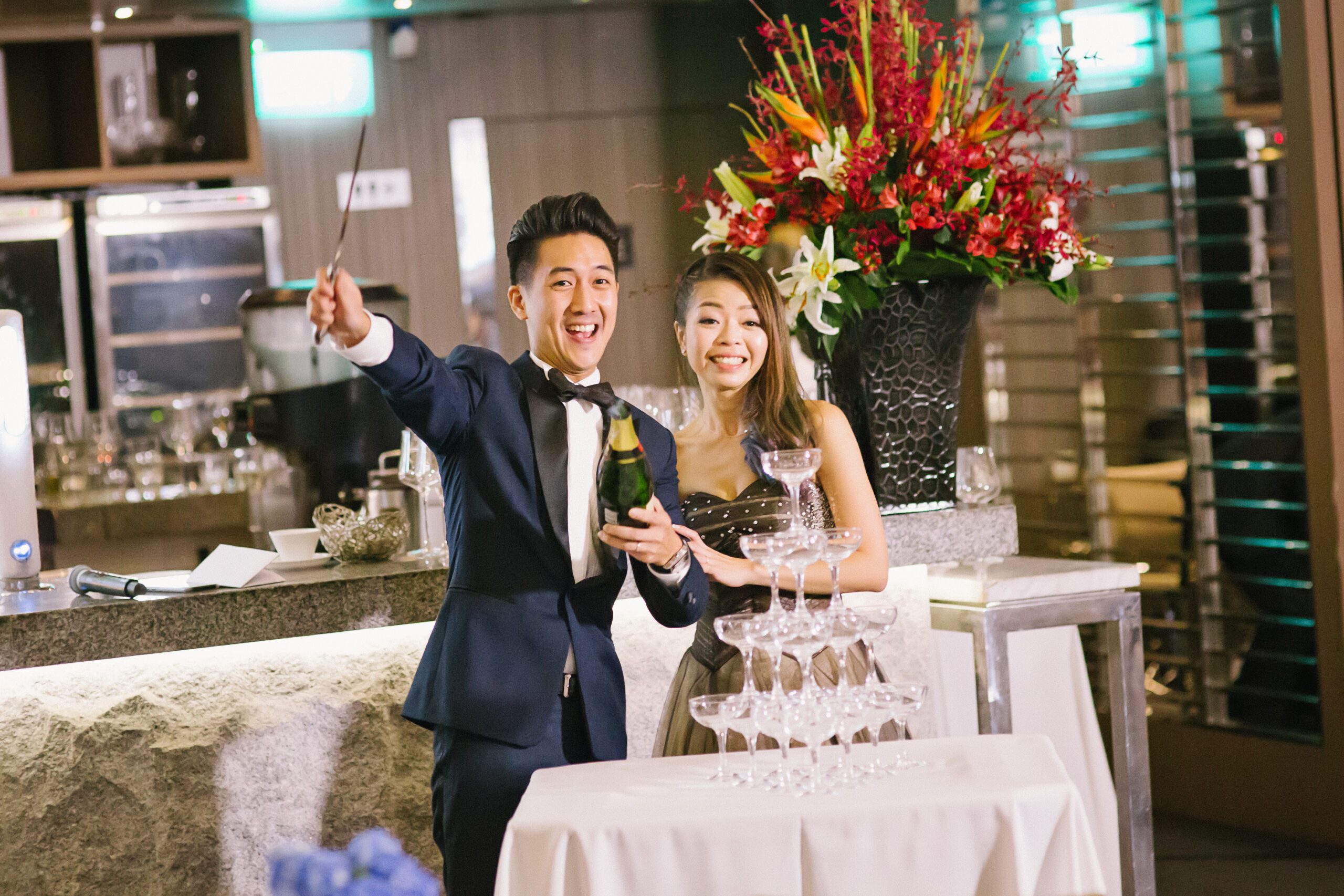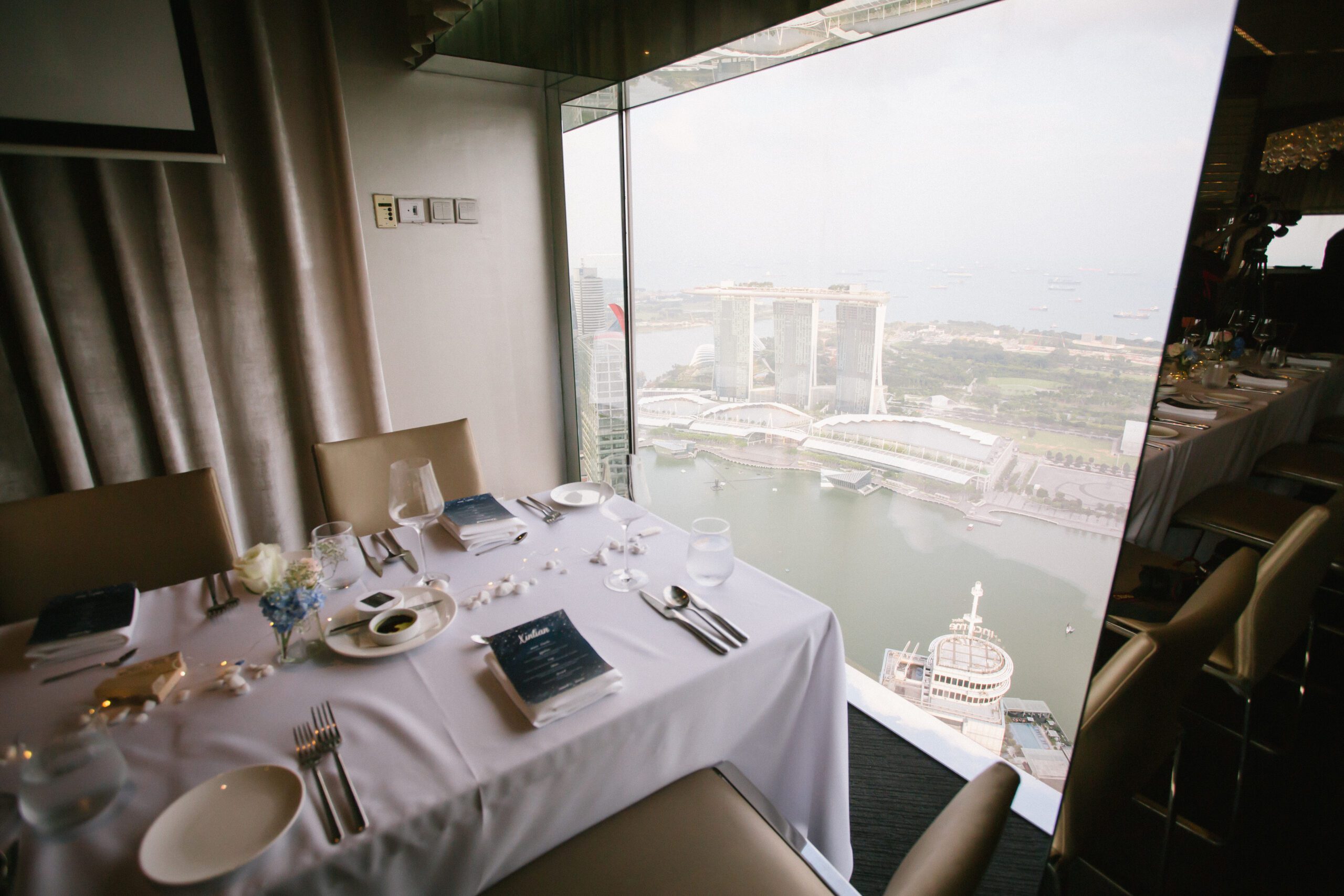 The day began at ONE°15 Marina Sentosa Cove, where Hansel and Jessica honoured their families with a traditional tea ceremony, which was followed by a touching wedding solemnisation led by their church pastor. Later that evening, the celebration continued at Stellar at 1-Altitude, an awe-inspiring venue high above the city, where sweeping skyline views perfectly complemented the elegance of the occasion.