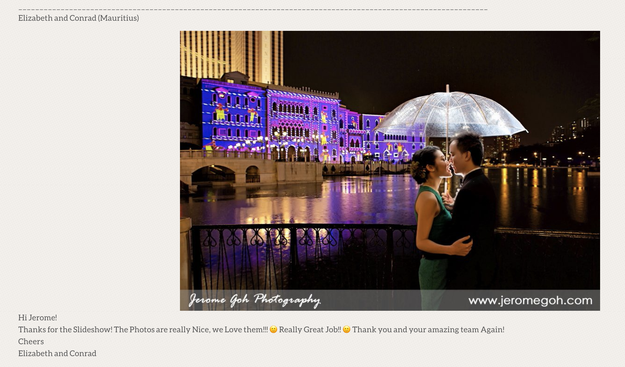 Photography client testimonials