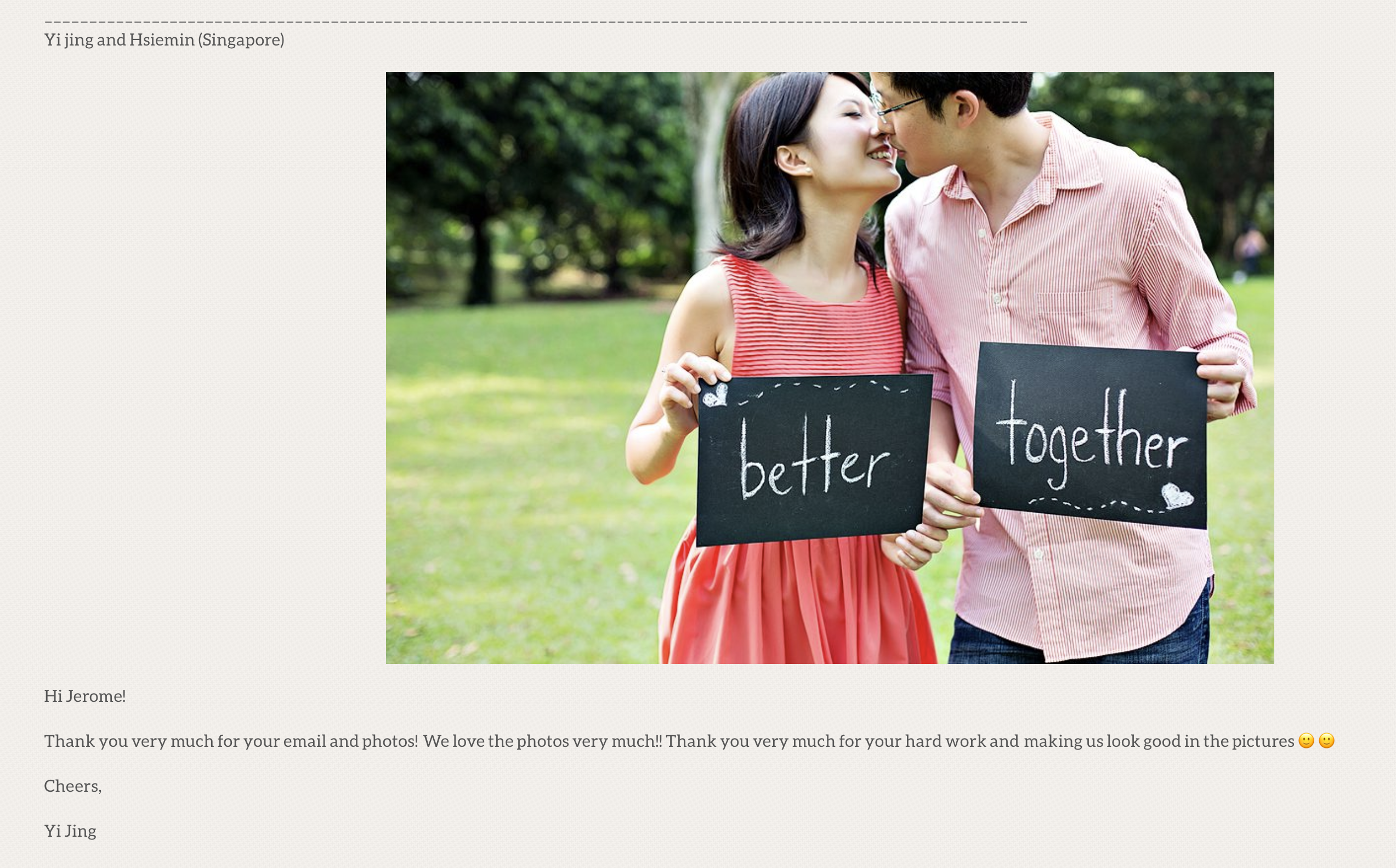 Before I closed my previous blog last year, I screenshot some of the reviews my clients sent me after I photographed their weddings (I am sure glad I did 😅).